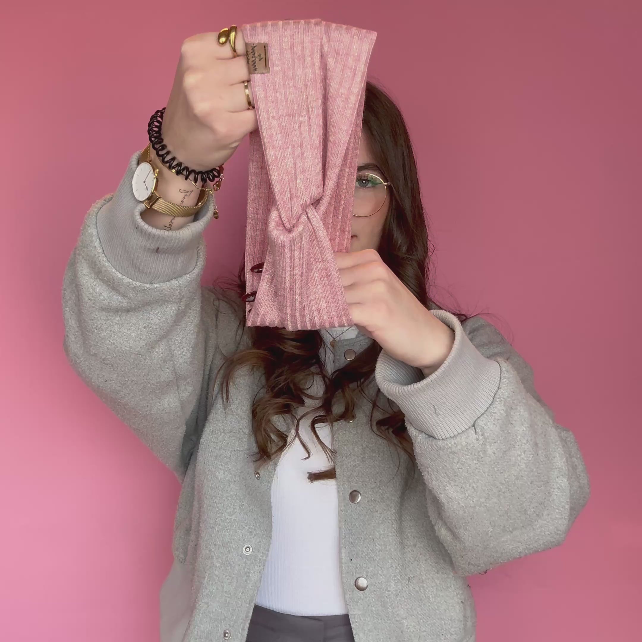 Basic Haarband - Strick Glitzer Rosa