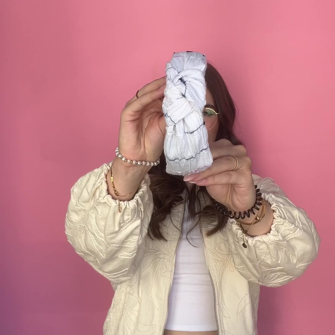 Unser Knoten Haarreif ist der zarteste in unserer Kollektion – dank des feinen Satins wirkt er schön dezent und ist dabei federleicht. Für den perfekten Sitz kannst du ihn ganz einfach anpassen: Erwärme den Haarreif vorsichtig mit einem Föhn und biege ihn dann sanft enger oder weiter.